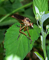 Bugstock Fall 2008 was a great success (as usual)...with a lot of the usual suspects in attendance (and of the six & eight-legged kind as well!). Robber flies (Family Asilidae) seemed to rule the weekend, with at least three (maybe four...Gayle?) species of Diogmites! Also, we were able to photograph Triorla interrupta with prey (skipper sp. pictured below).